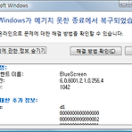 재부팅을 안하고 한 4일 쯤 쓰고 있다가 HTS를 사용하려고 인증서가 들어있는 USB를 꼽았는데, USB가 인식되고 한 2초 후 공포의 블루스크린이 떴습니다. 순간 '파란 나라를 보았니~' 노래가 떠올랐습니다. 그래도 다시 부팅하니 윈도우가 모른 척하고 있지는 않더군요. 아래와 같은 메시지 창이 떴습니다. 그런데 문제 이벤트 이름은 왜 BlueScreen인 건지. 장난하나. 어쨌든 아래와 같은 메시지를 보여주었습니다. 문제 서명: 문제 이벤트 이름: BlueScreen OS 버전: 6.0.6001.2.1.0.256.4 로캘 ID: 1042 문제에 대한 추가 정보: BCCode: d1 BCP1: 0000000000000000 BCP2: 0000000000000002 BCP3: 0000000000000001..